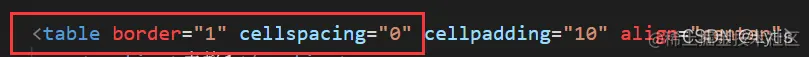 这里是使用table标签属性的方式设置表格的样式,具体代码如下图: