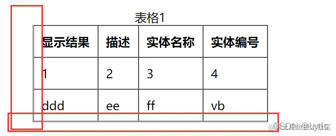 当我们将rules属性去除,且frame的属性值设为void时,可以看到困扰我们的问题好像已经被解决了,左右边的边框只剩下了内部元素边框。但这时我们不难发现表格中间的多条线颜色与最外层边框不同,想必大家也可以想到也是边框重叠的问题,只不过是内边框的重叠。比如说图中红色部分圈出来的内容,就是因为“显示结果”的右边框和描述的左边框重叠,导致颜色加重,其他地方同理。