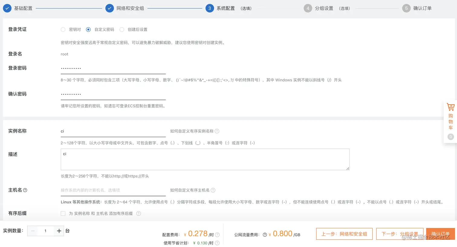 设置实例名称 ci-server 和登录密码(略)