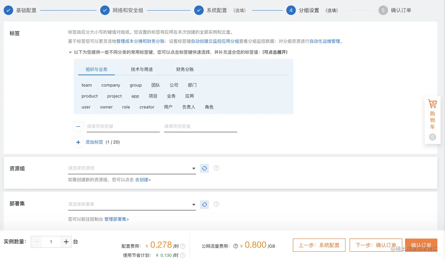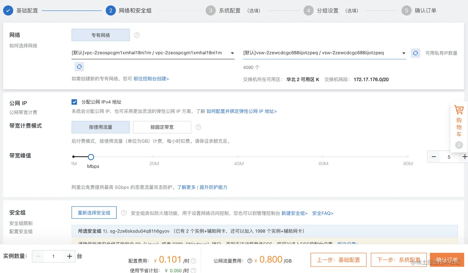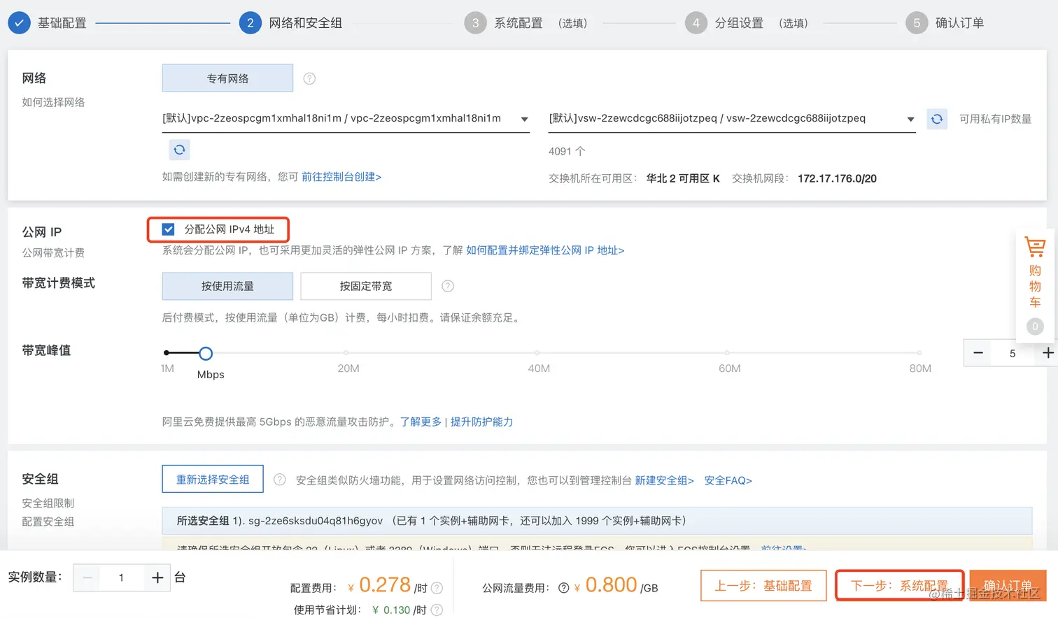 下一步,网络和安全组配置