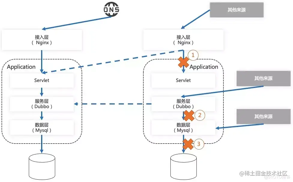 服务层。业务流量在机房内部和跨机房的同步调用方式,一般有 Consumer、Provider、注册中心等角色,具备流量路由、流量保护、故障隔离三个核心能力,避免调用错误导致的数据脏写,加速切流期间的业务恢复。