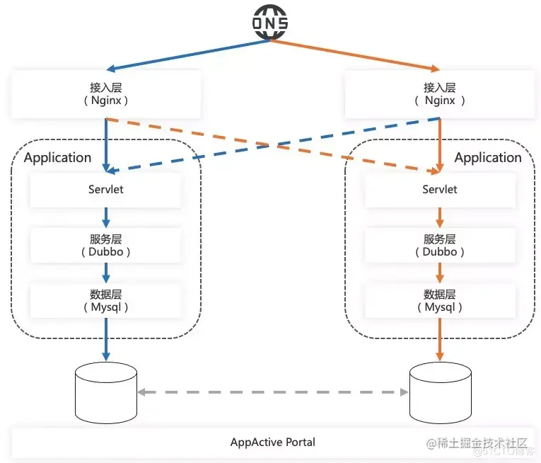 在接入层支持流量解析,将请求流量进行解析,将流量打入机房的应用机器。基于 应用侧 Servlet 插件、Dubbo 插件、MySQL 插件的能力,业务流量请求在单一机房里面自闭环,最终读写到本机房的数据库。