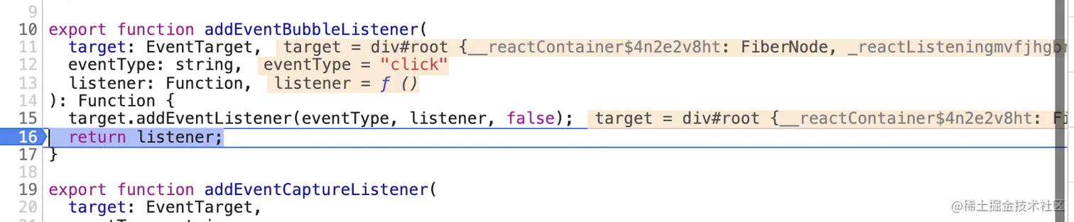 首先我们点击按钮,肯定是执行上面绑定的listener, listener就是dispatchDiscreteEvent函数,用来处理离散事件,click这种的就属于离散事件,但是不管怎么样的事件最终都会调用dispatchEvent, dispatchEvent是用来分发事件的。