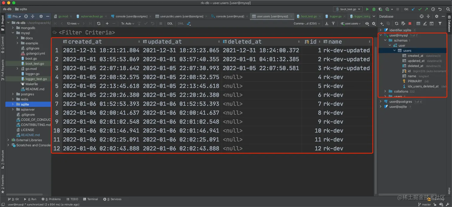 rk-boot/database/mysql 没有对 gorm 进行2次封装。 而是提供了一个通过 YAML 初始化 gorm 的方法。我们希望通过这种方式,简化 gorm 初始化过程,包括日志,实例管理。