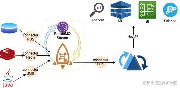 在Lakehouse架构中我们选择消息产品RocketMQ和数据湖产品Hudi。