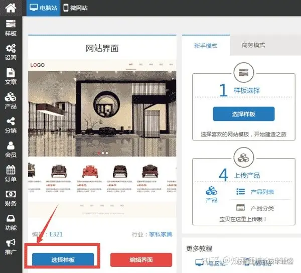 第二步、进入网站后台管理处,安装样板网站。 首先要选择样板网站,样板网站是建站系统开发的公司已经做好的漂亮的网站,你不需要再花时间去想网站的架构和板块的设置了,直接在众多样板中选择一个自己喜欢的样板网站进行安装。\