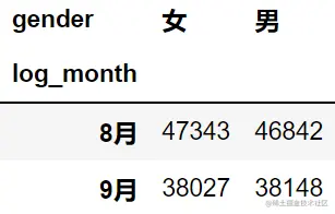 统计两月中男女用户的人数,看看性别比例是否相差较大。