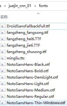 建一个fonts文件夹,从字体库里拷一部分字体放进来,我这里是拷贝了13种字体文件。