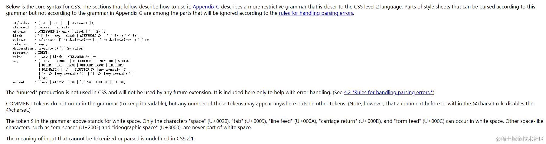 at-rule : ATKEYWORD S* any* [ block | ';' S* ];