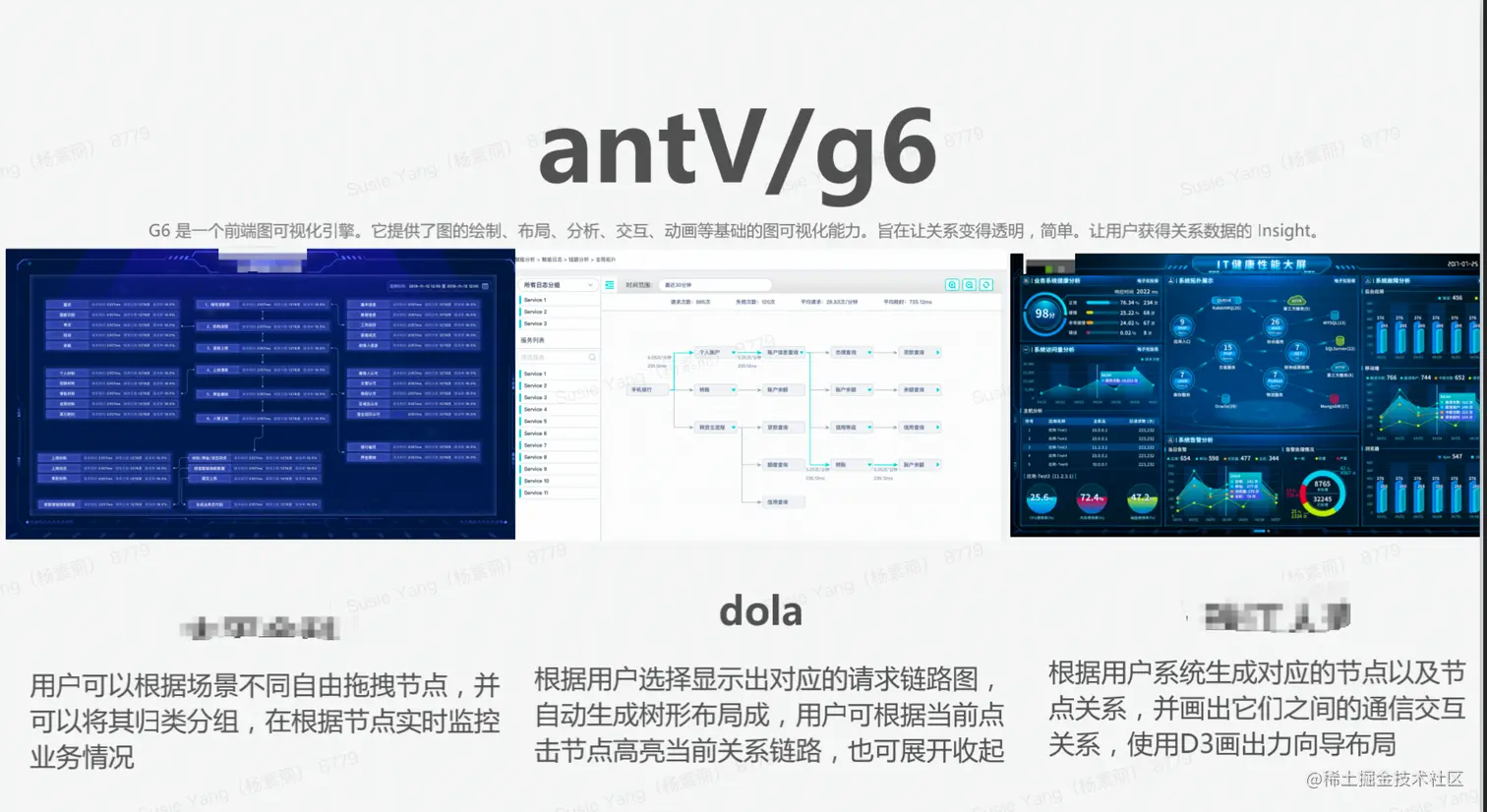antV是阿里开源的,包含的内容很多,G6是其中的一个小模块。G6是一个前端图可视化引擎,它提供了图的绘制、布局、分析、交互、动画等基础的图可视化能力,旨在让关系变得透明、简单,让用户获得关系数据的insight。