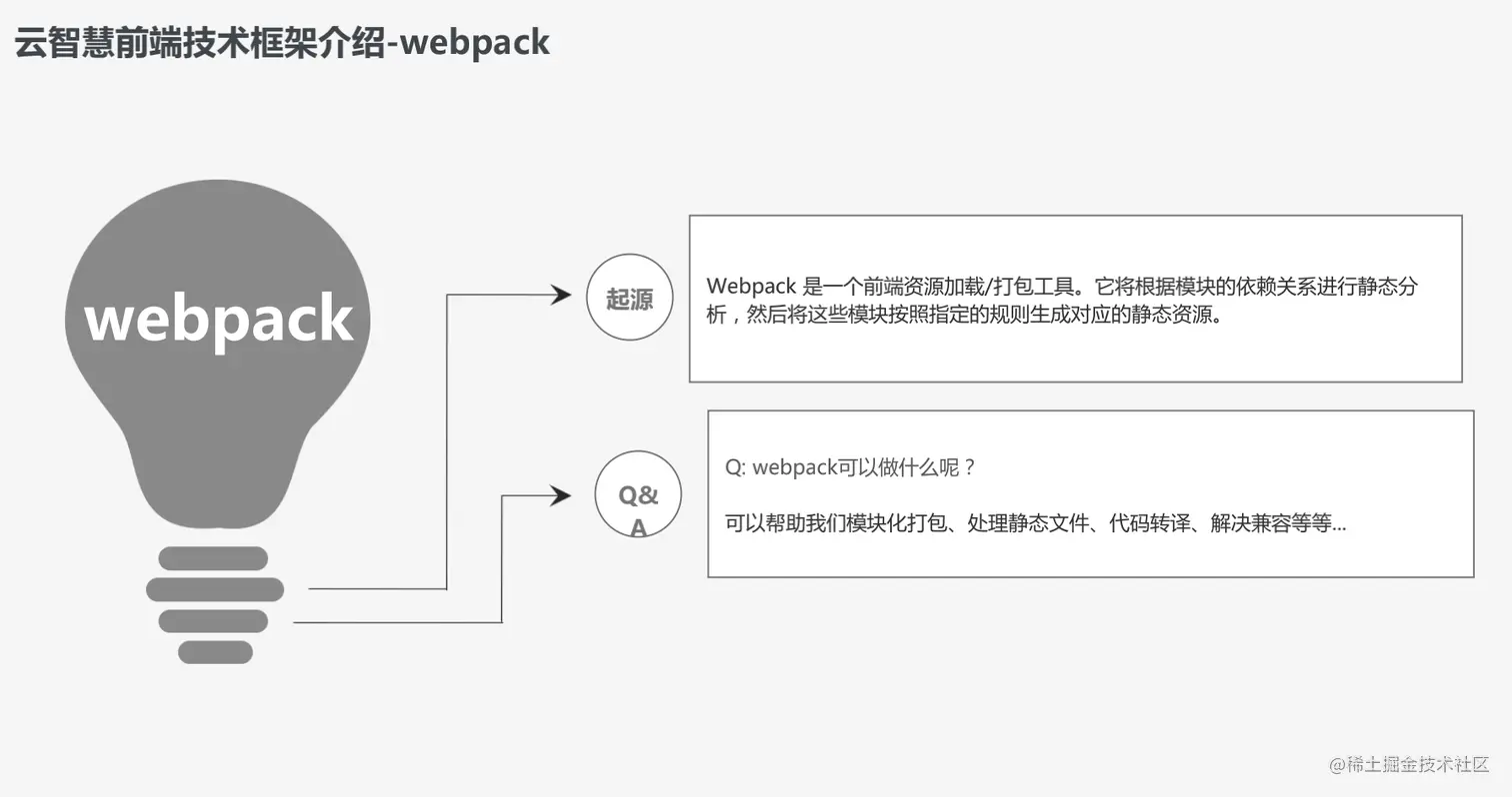 webpack是一个前端资源加载/打包工具,它将根据模块的依赖关系进行静态分析,然后将这些模块按照知识的规则生成对应的静态资源。