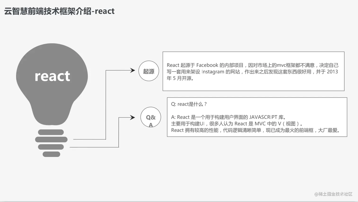 React起源于Facebook的内部项目,当时市场上的MVC框架均不能满足Facebook的需求,于是决定自己写一套用来建设Instagram的网站,React被做出来之后发现很好用,并于2013年5月正式开源。