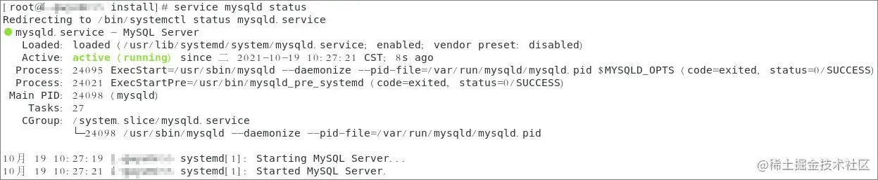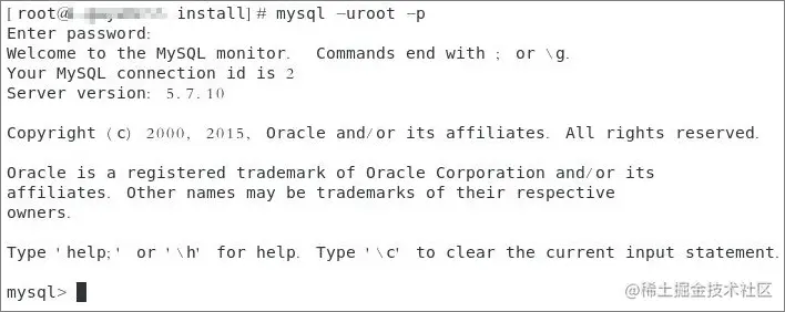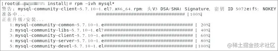 注:截图中多安装了一个mysql-community-devel-5.7.10-1.el7.x86_64.rpm开发库,实际上可以不装。