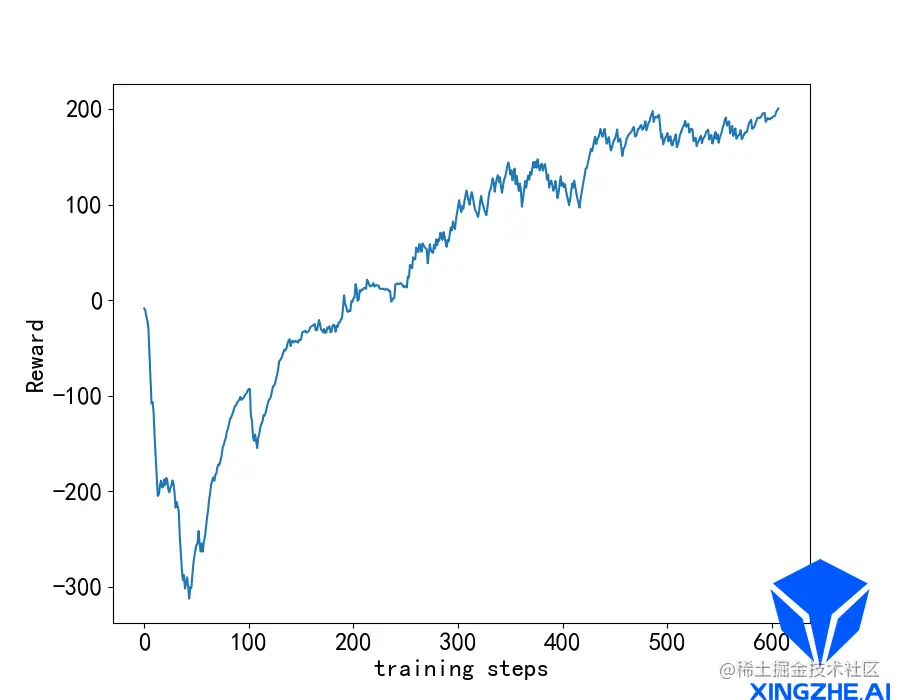 最后得到Reward的曲线如下图,趋于收敛: