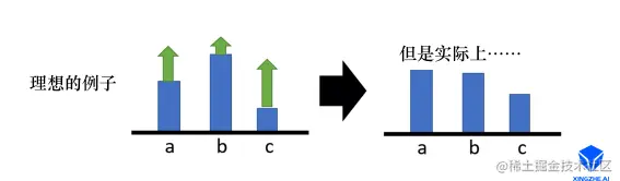 - 在很多游戏中,得到的奖励总是正的,或者说最低也就是0。由于采取行动的概率和为1,当所有的reward都为正的时候,可能存在进行归一化后,(权重)大的上升的多,小的,归一化后它就是下降的。比如下面这种情况,假设某一状态下有三个动作,分别是,,,奖励都是正的。根据公式,我们希望将这三个动作的概率以及对数概率都拉高,但是它们前面的权重不一样,有大有小,所以权重大的,上升的多一点;权重小的,上升的少一些,又因为对数概率是一个概率,三个动作的和要为0,那么在做完归一化后,上升多的才会上升,上升的少的就是下降的。