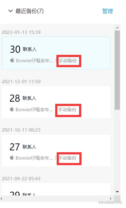 注意: 这个需要自己提前在手机上开启“手动备份”才可以看到删除的联系人。