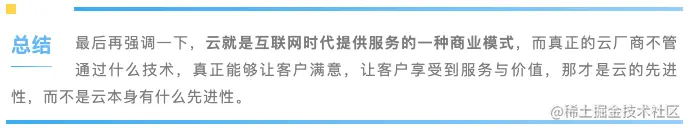 所以捣鼓所谓虚拟化,容器化,分布式存储等等技术的公司们,如果你们交付方式不是以云(互联网)和服务的方式提供,请正名你们只是别人云的技术提供商,根本不是什么云厂商。