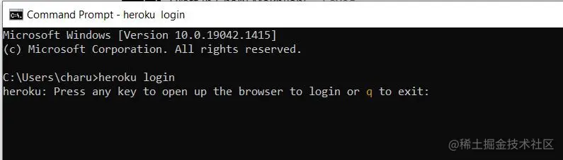 你可以在heroku-cli中查看Heroku应用程序的部署日志。一旦你下载了cli,打开命令提示符并登录到Heroku。