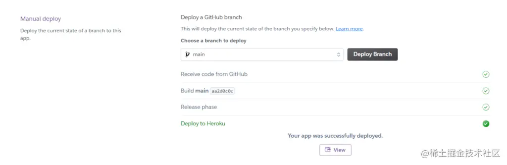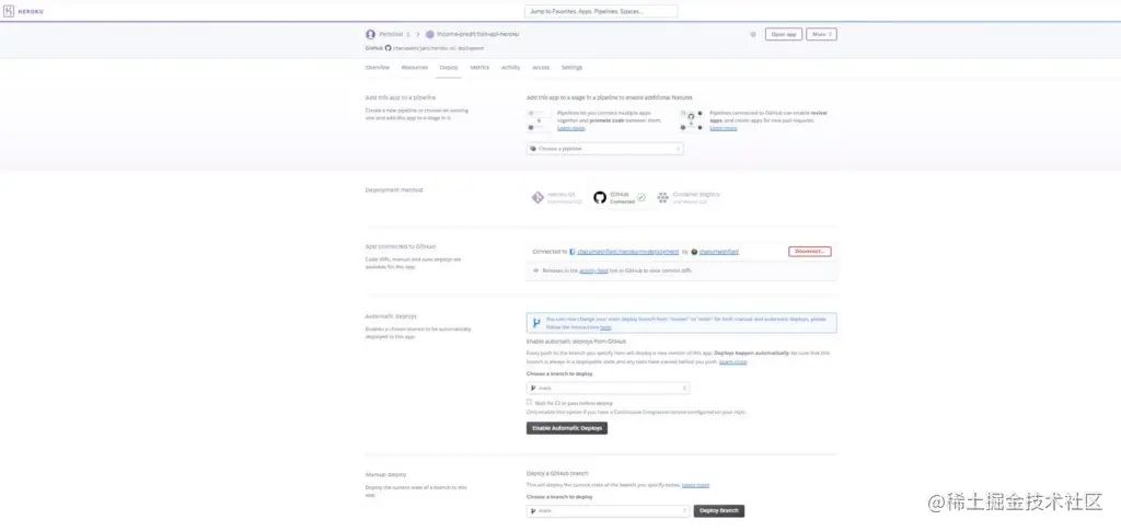 - 在Heroku上选择手动部署(或启用自动部署)。