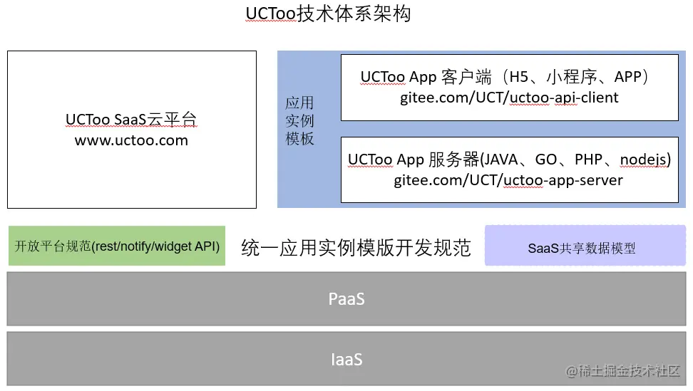 项目简介: UCToo是一系列实现云原生分布式SaaS应用开发的最佳实践的总称,也是一套云原生分布式SaaS应用开发基础设施。其中,内置众多开发者效率工具,可快速进行SaaS应用的开发和运营,适合作为SaaS平台、产业互联网等产品的起始项目。开发成果可共享,可互联互通,可在UCToo应用市场商业化分发。