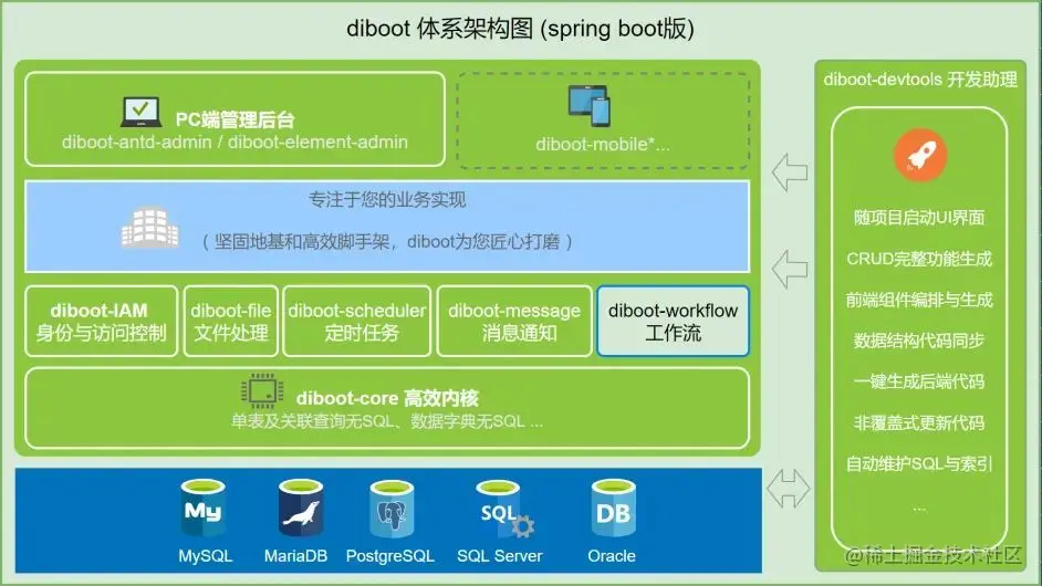 项目简介: Diboot是一个为开发人员打造的低代码开发平台,将复杂的工作简单化、重复的工作自动化,提高质量、效率、可维护性。