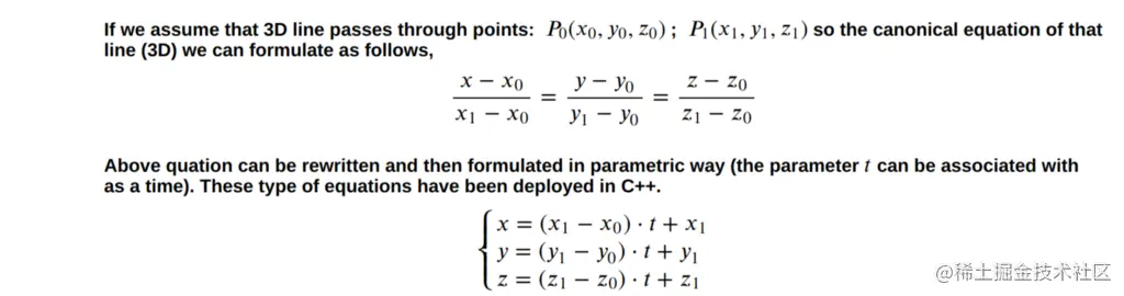 正如我上面提到的,三维线在三维空间中穿过两个点的方程式是必要的,因为我们正在寻找以前的节点,它位于离随机生成的新节点最近的地方(我们正在寻找新生成的节点和树的现有节点之间的最小距离)。