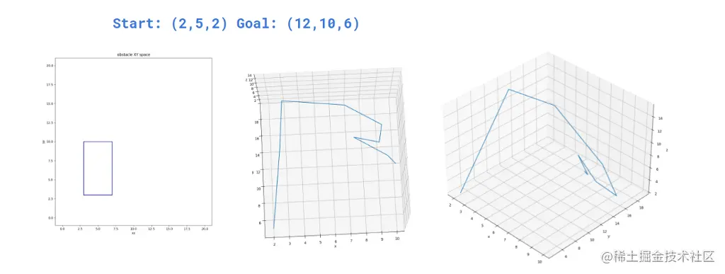 请注意,我无法生成3D形状(障碍物),所以障碍物只在2D空间中标出。