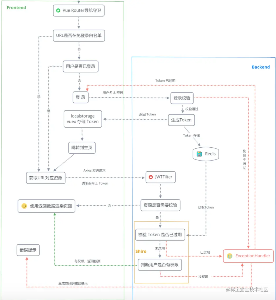 有的系统要求 "可见即可操作", 意思是如果页面上能够看到操作按钮, 那么用户就可以操作, 要实现此需求, 这里就需要前端来配合, 前端开发把用户的权限信息缓存, 在页面判断用户是否包含此权限, 如果有, 就显示该按钮, 如果没有, 就隐藏该按钮。