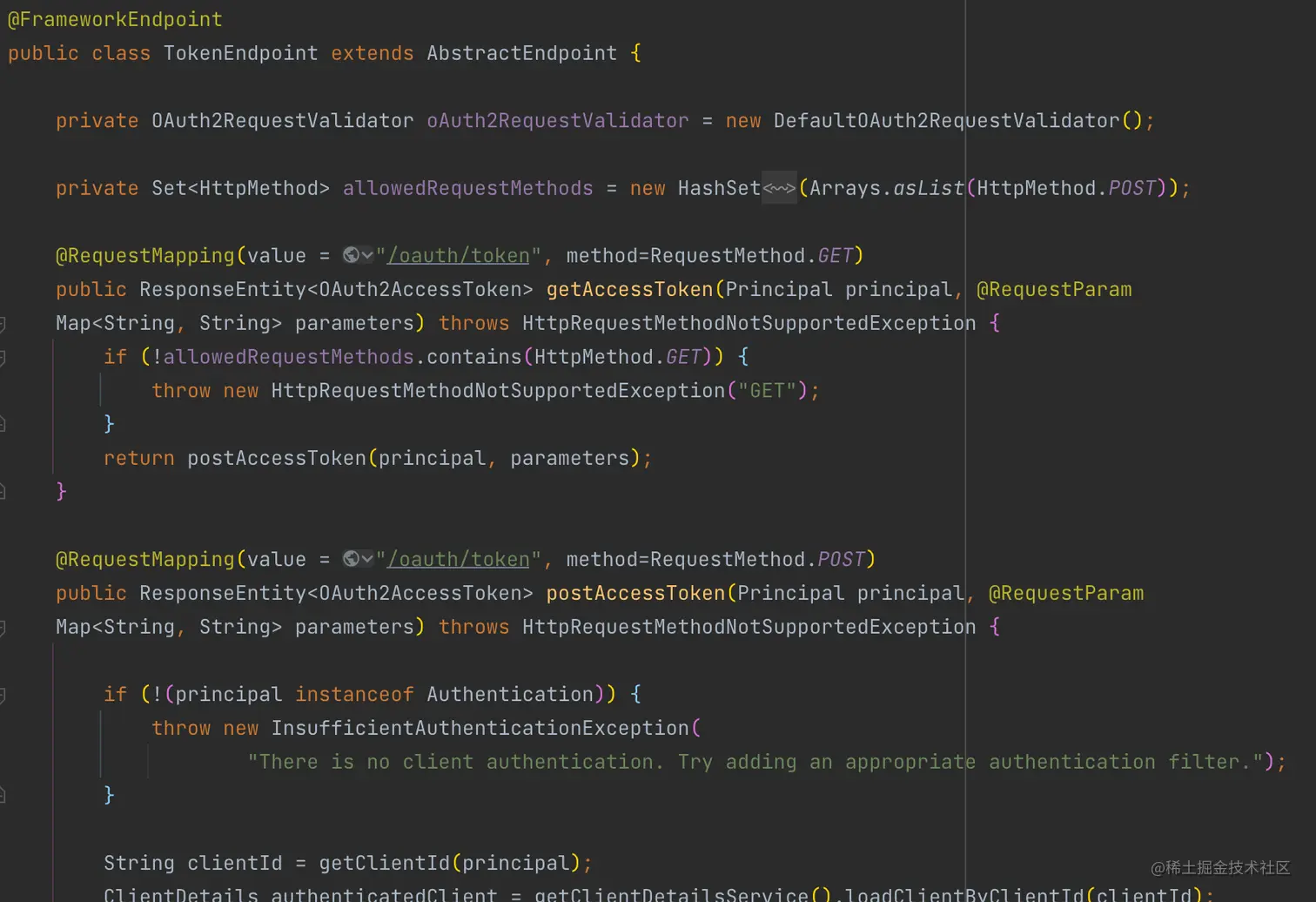 这个请求在 TokenEndpoint 类中处理,我们可以找到如下源代码: