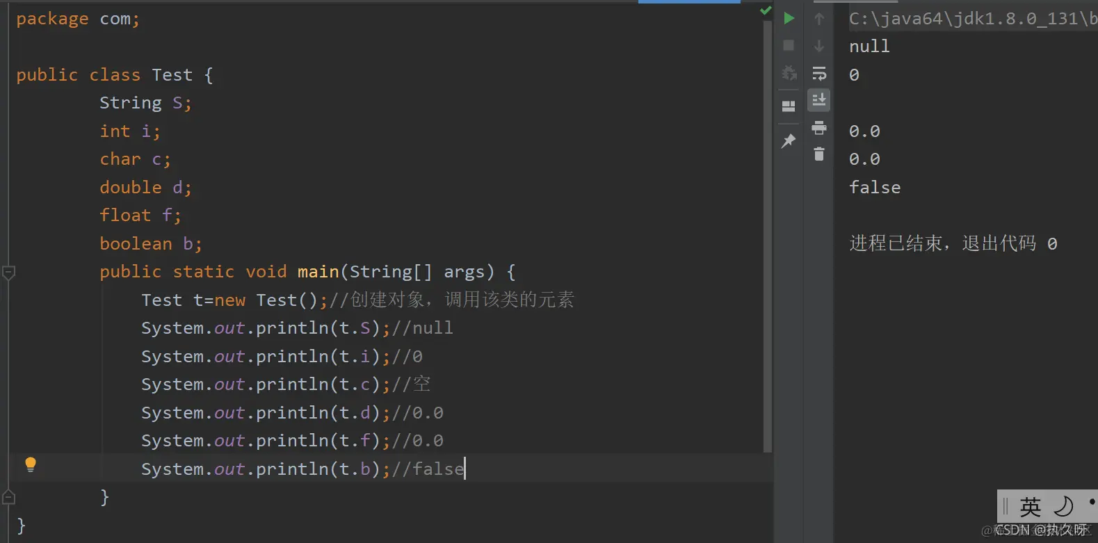 上图是测试的初始值,注:必须变量在类下面方法外才会有初始值(也就是成员变量)