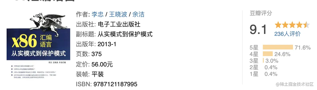 第 2 本:《x86汇编语言-从实模式到保护模式》(李忠 / 王晓波 / 余洁)