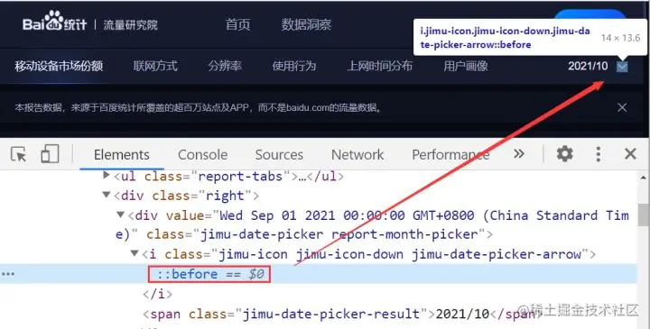 在很多前端页面中,大家会见到很多::before、::after 元素,比如【百度流量研究院】: