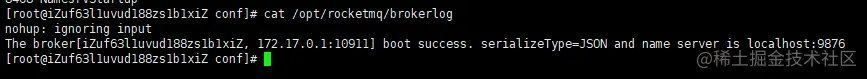 nohup /opt/rocketmq/bin/mqbroker -c /opt/rocketmq/conf/broker.conf -n localhost:9876 > /opt/rocketmq/brokerlog 2>&1 &