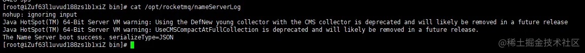 nohup /opt/rocketmq/bin/mqnamesrv > /opt/rocketmq/nameServerLog 2>&1 &