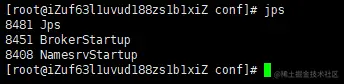 启动完成后,在nohup.out里看到这一条关键日志就是启动成功了。并且使用jps指令可以看到有一个NamesrvStartup进程。