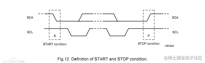 总线SCL保持高电平,SDA从高电平将为低电平,即I2C通讯开始。