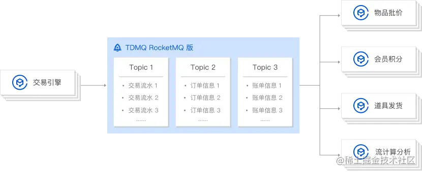 TDMQ RocketMQ 版能较好地应对各类营销活动带来的流量冲击,非常适用于顺序性以及事务性要求较高的场景,在电商交易、金融结算等领域有着十分广泛的应用。
