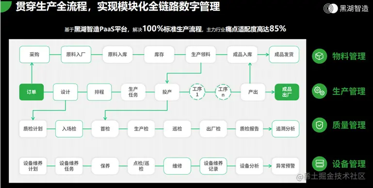 现在实现全产业链的数字化、智能化,就剩下生产端,生产端只要实现这个智能化,那全产业链数字化、智能化就可以完成了。黑湖制造在这个生产端具体提出了什么样的解决方案去解决这些难点,以及刚才说的那些问题呢?