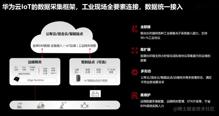 2.3 华为云loT的数据采集框架,工业现场全要素连接,数据统一接入
