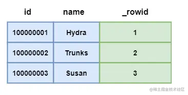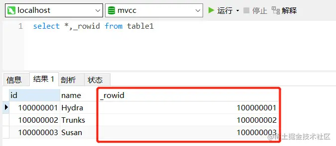 查看表中的数据,此时对应的_rowid理论上是1~3: