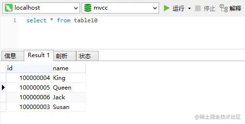 查看表中的全部数据,可以看到第一次插入的三条数据中,有两条数据被覆盖了: