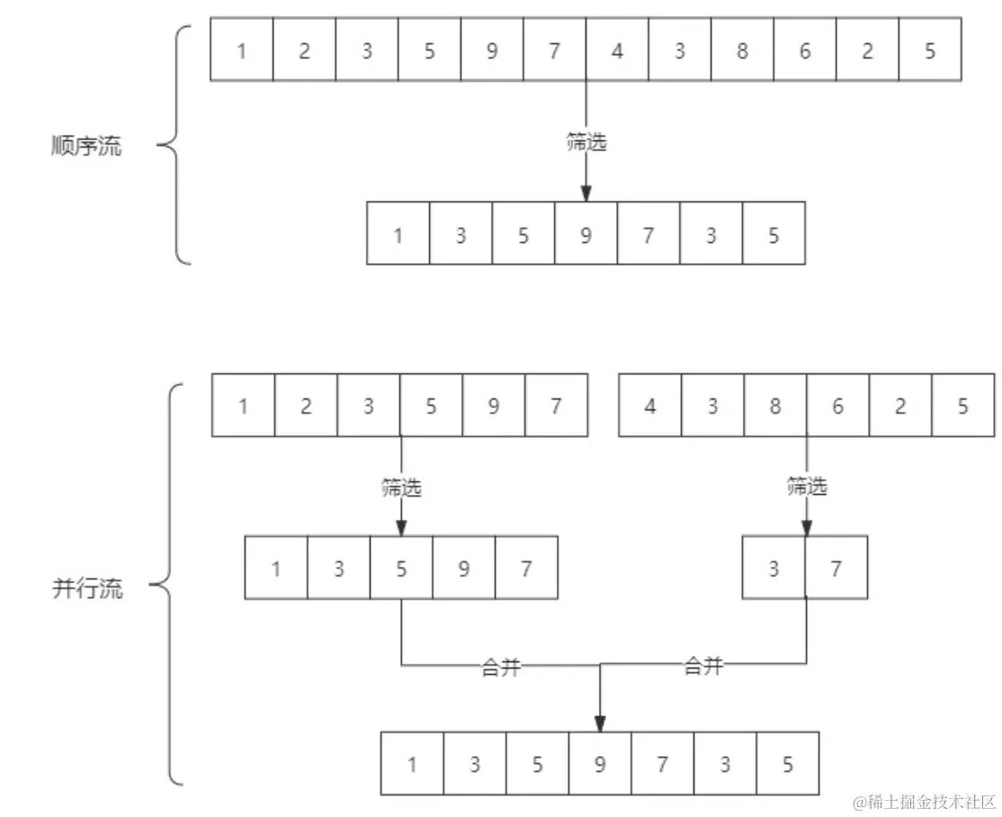 stream和parallelStream的简单区分: stream是顺序流,由主线程按顺序对流执行操作,而parallelStream是并行流,内部以多线程并行执行的方式对流进行操作,但前提是流中的数据处理没有顺序要求。