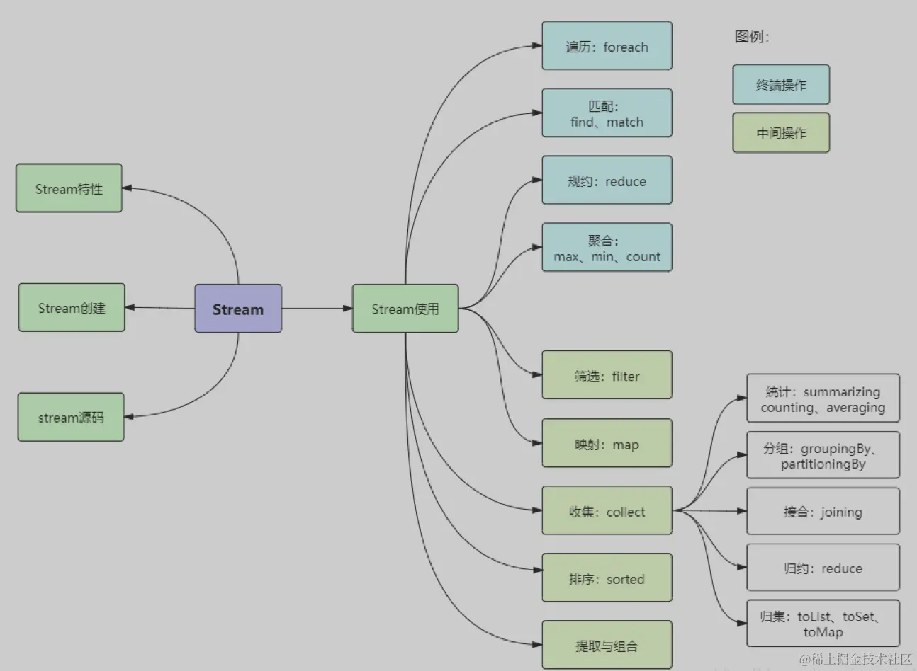collect,收集,可以说是内容最繁多、功能最丰富的部分了。从字面上去理解,就是把一个流收集起来,最终可以是收集成一个值也可以收集成一个新的集合。