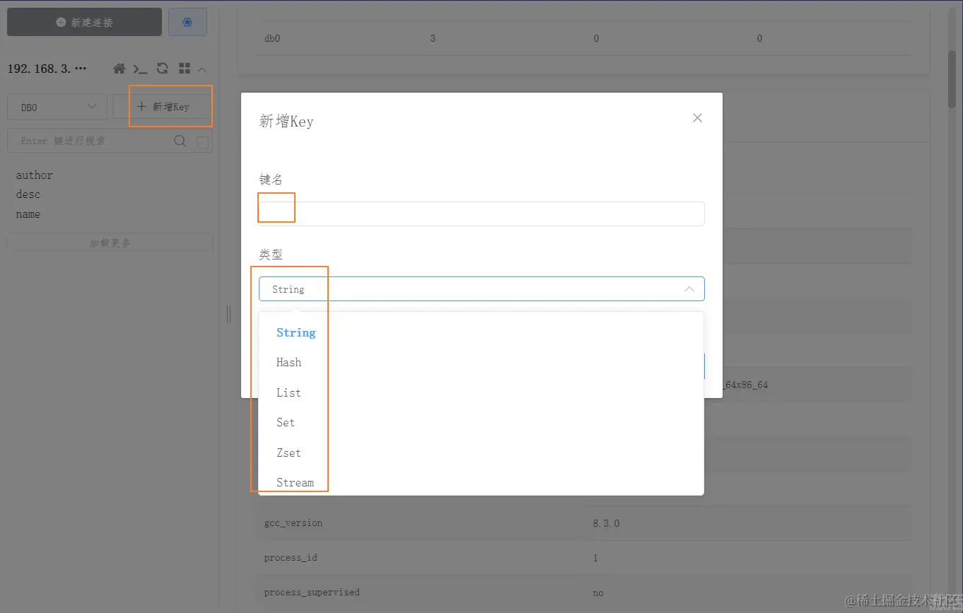 新安装的数据库,没有数据,想往里面插入一些数据,可以点击【新增 key】
