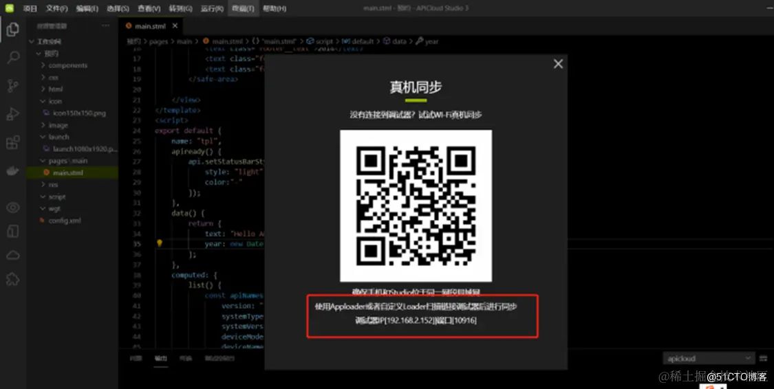 (5)修改或者提交项目源码,并为当前项目云编译自定义 Loader 进行真机同步调试预览。