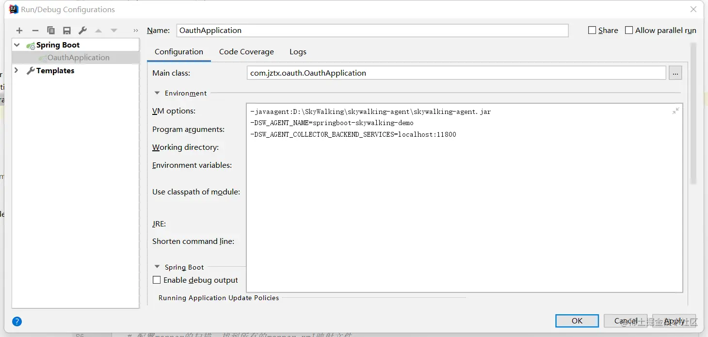 -javaagent:D:\SkyWalking\skywalking-agent\skywalking-agent.jar