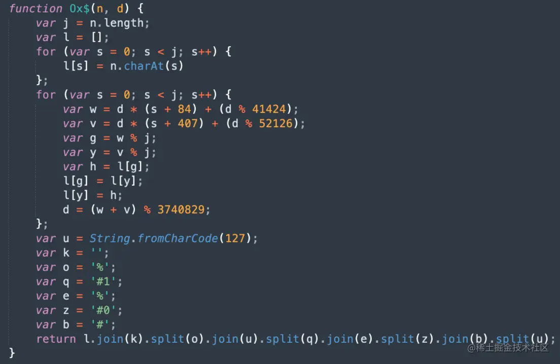 去混淆的结果包含另一个解密函数 Ox$(),这是第三层解密函数。