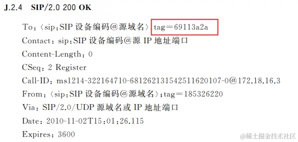 在 SSRC 字段返回给上级平台后,上级平台的确可以播放视频了,但是马上会出现断流现象,于是再次抓包和国标协议进行对比,发现是返回的 To 字段没有携带 tag,不符合 sip 协议。