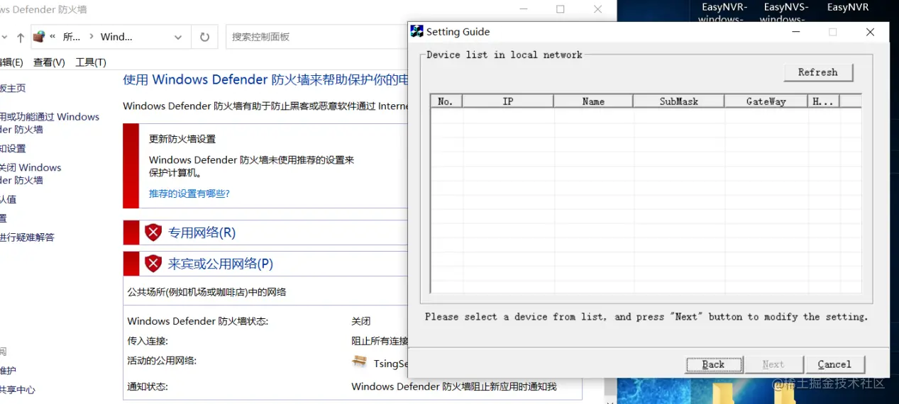 2.接着,如果关闭防火墙后还是无法搜索到 EasyNVR,那么再来查看下 EasyNVR 在设备里是否已经启动服务,如图: