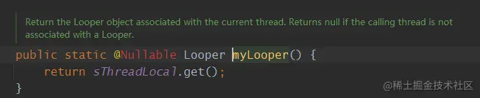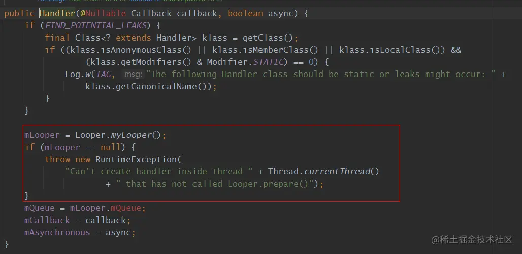 Looper.myLooper()获得的Looper为null,那么就会抛出异常。